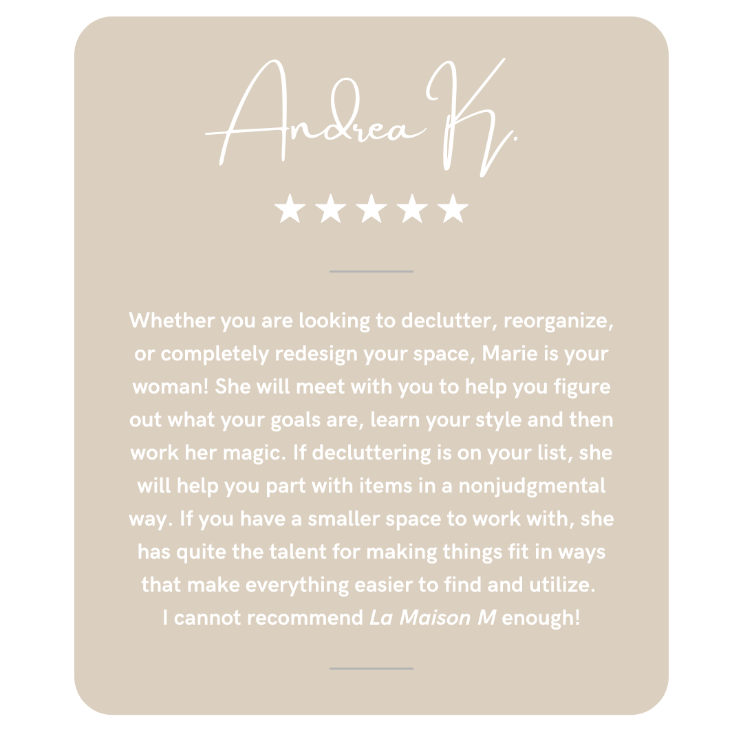 I transform living spaces into harmonious environments by providing innovative storage solutions and clean organizational services that simplify my clients' lives and can help people reclaim their space, reduce stress and live more intentionally.